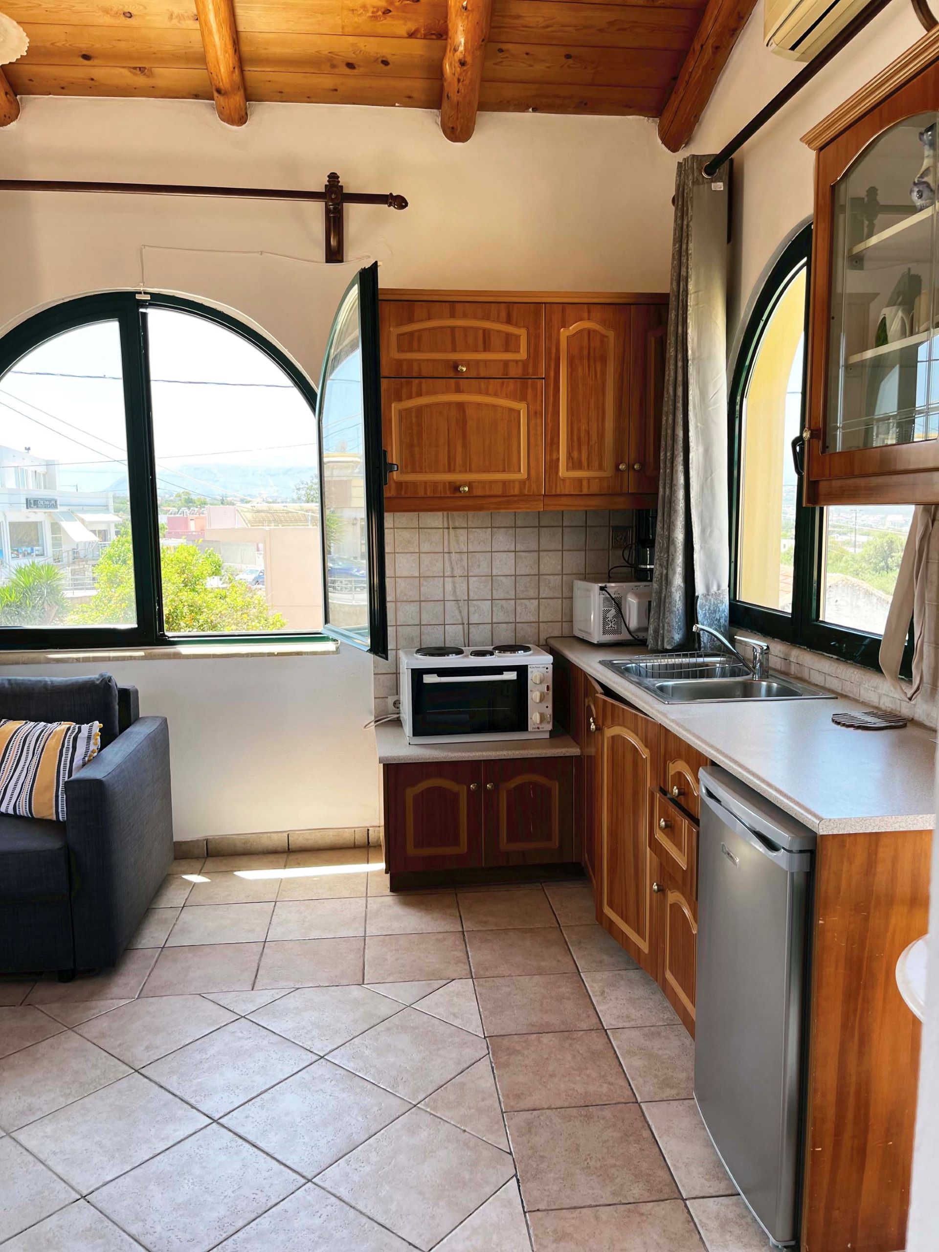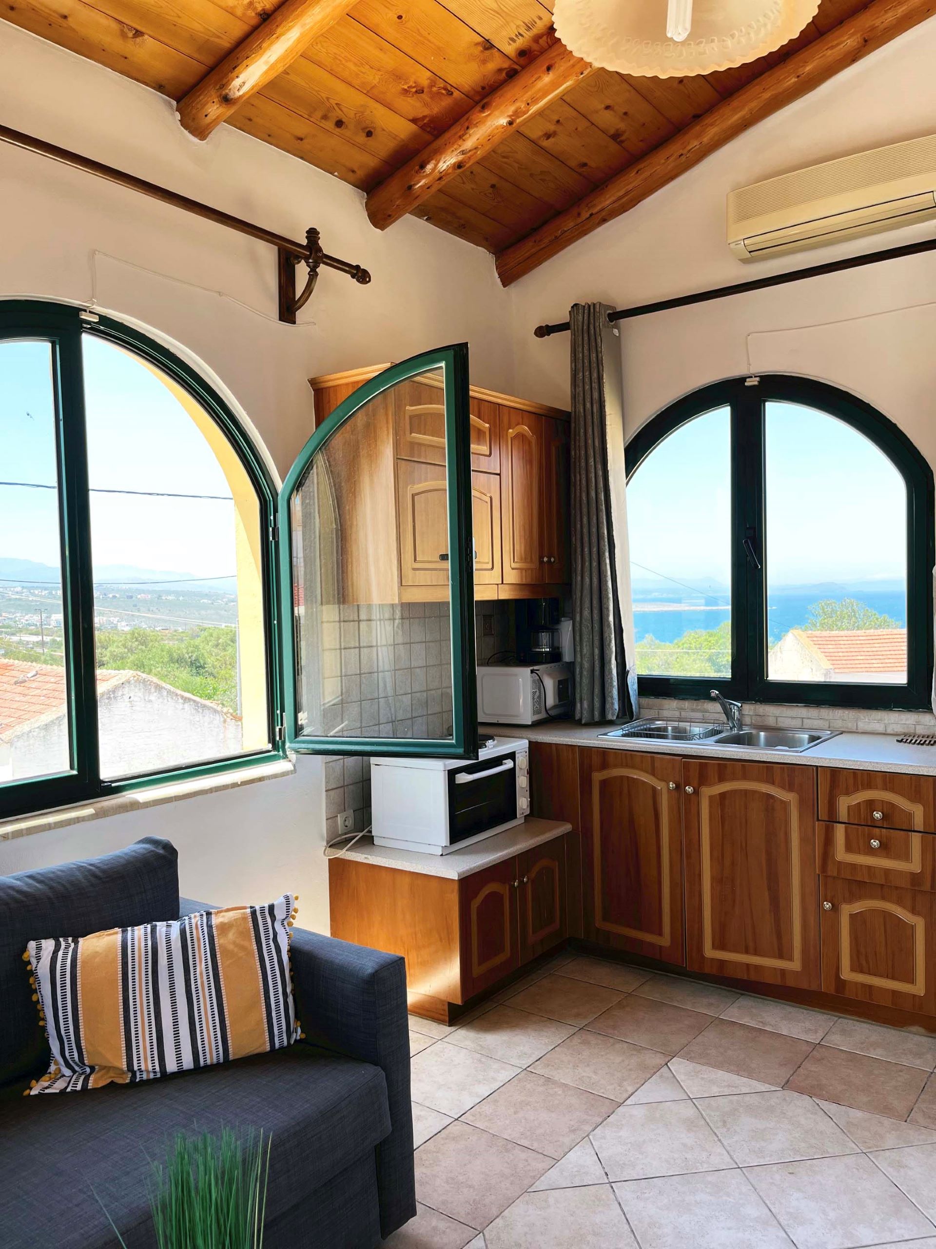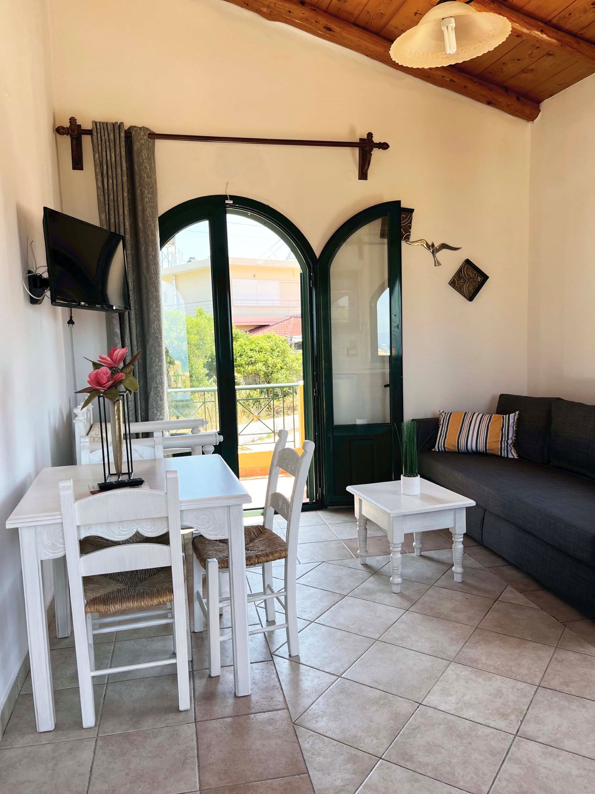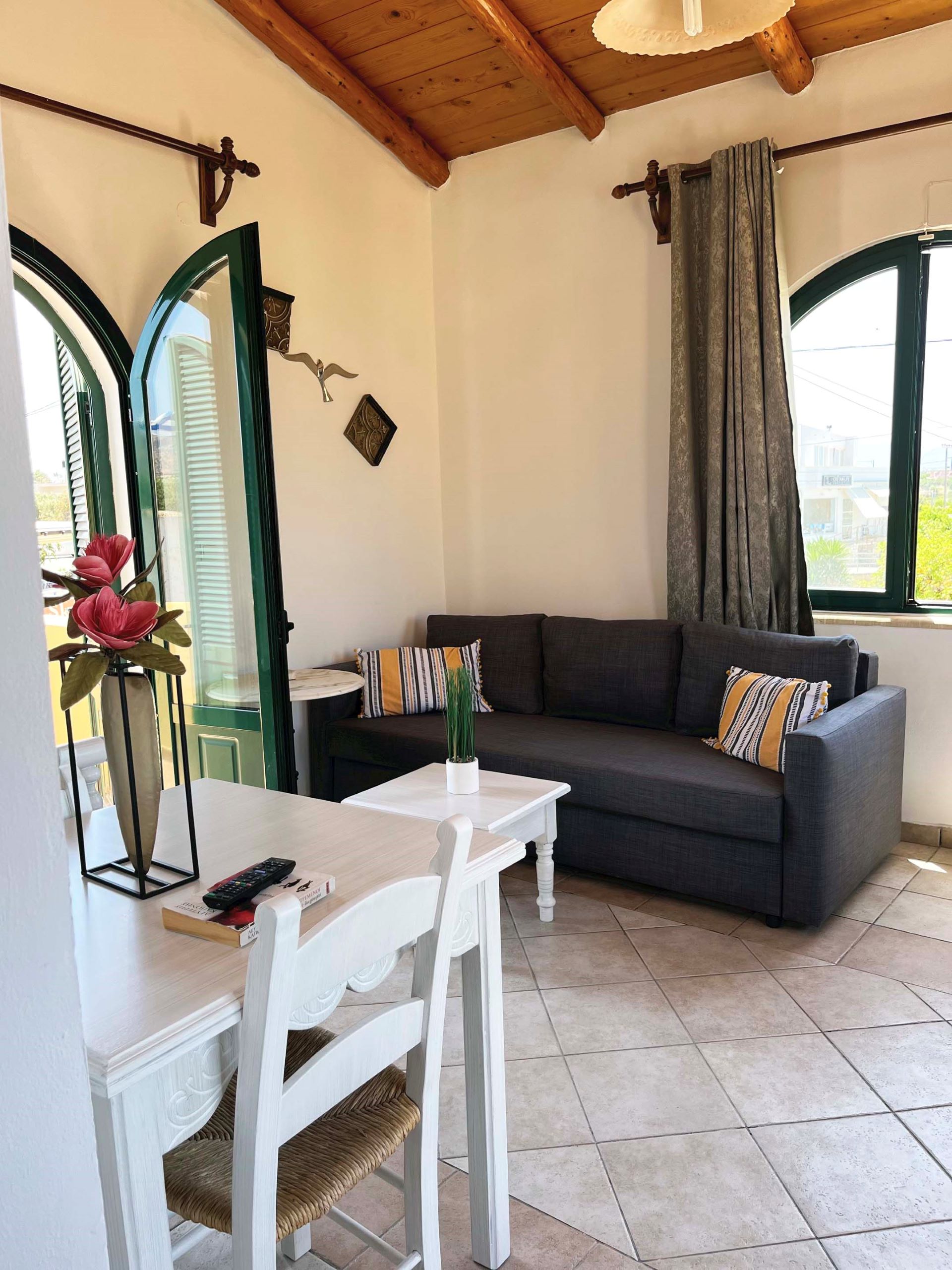 Bask in the serenity of the Cretan coastline at Athina Apartment. This 1-bedroom unit features two single beds and a double sofa bed, making it perfect for couples or friends traveling together. Enjoy peaceful mornings on the shared balcony with sea views, or take a short drive to nearby Stavros or Kalathas Beach.