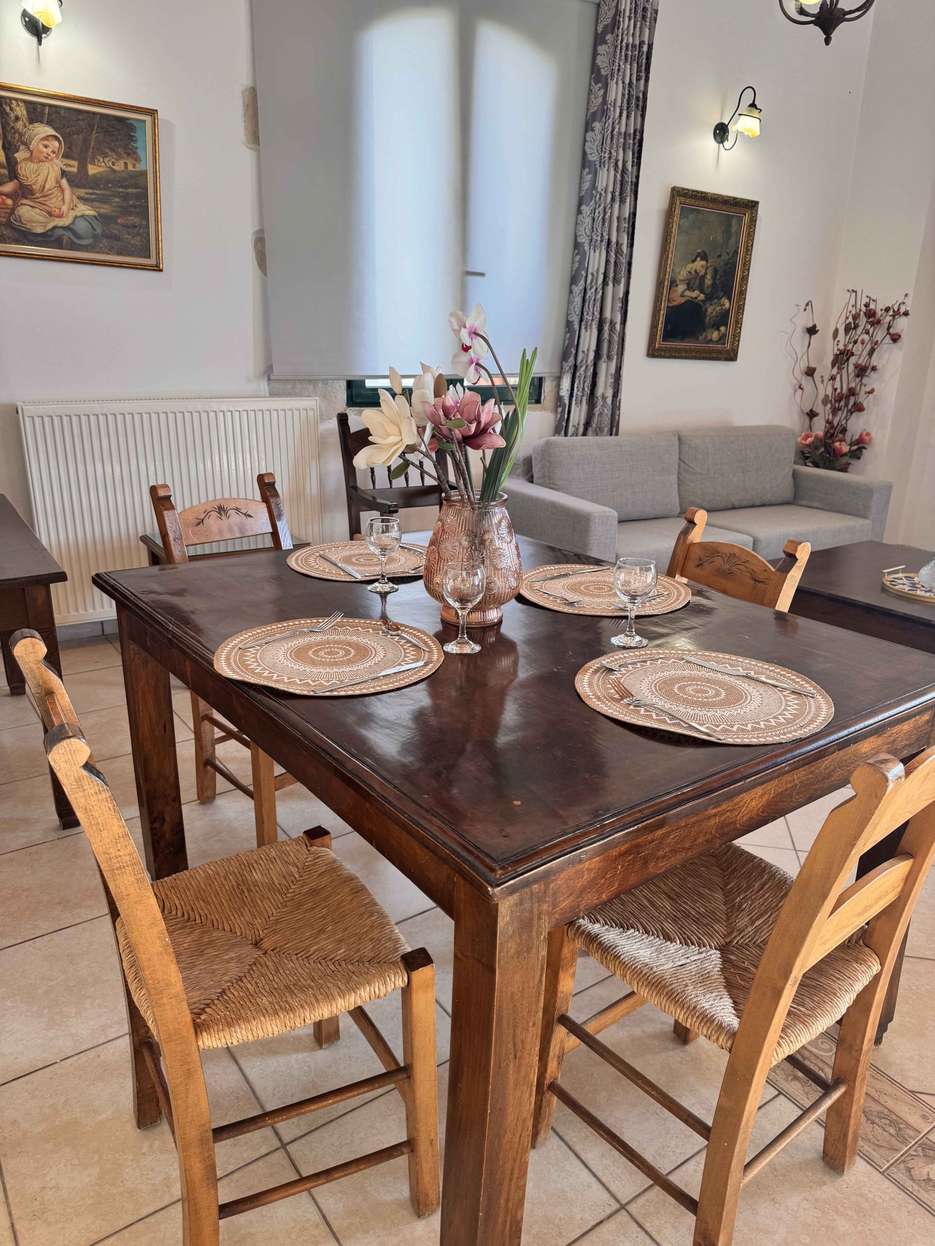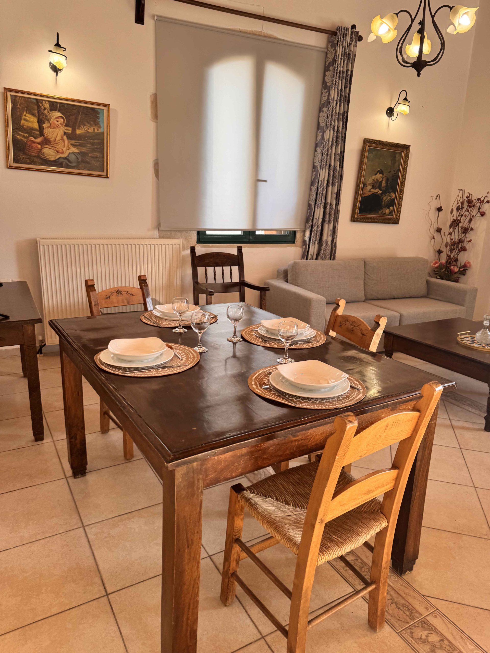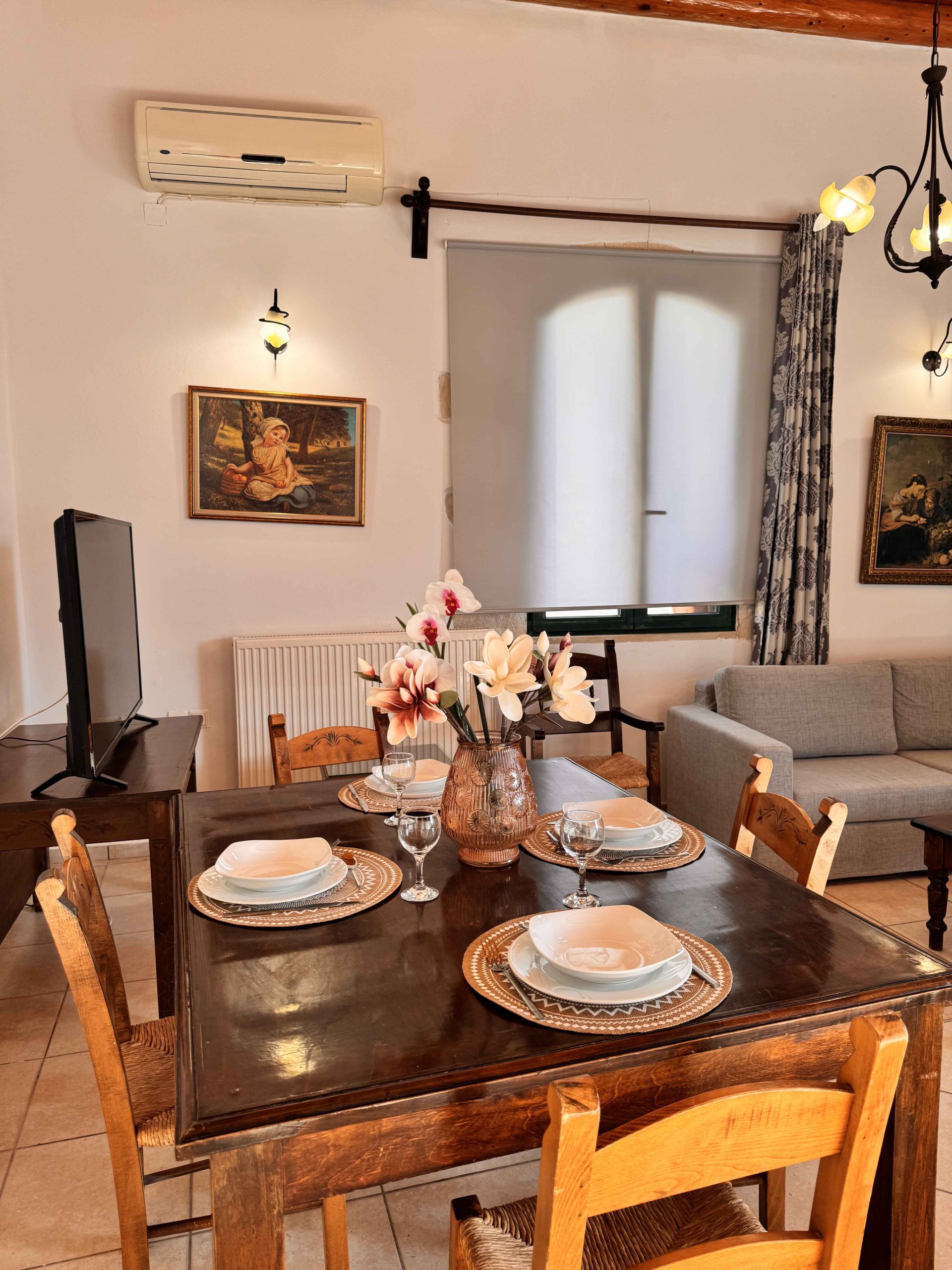Enjoy space, privacy, and convenience at Kalliopi Apartment, one of the only units with 2 full bathrooms—perfect for groups or families. Relax in your outdoor dining area, take a dip in the shared pool, or explore nearby beaches. Features include self check-in, full kitchen, and free parking.